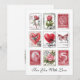 A vintage style collage featuring romantic postal stamp designs with roses hearts birds butterflies and classic red motifs. Inspired by antique love letters and old postage this artwork blends floral illustrations and distressed textures for a timeless Valentine theme.