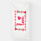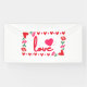 This banner showcases the word “Love” in a unique print font with red letters pink outline inside of a rectangular styled design with red and pink themed hearts, roses and strawberry style heart on two corners in this Valentines Day theme. This banner has single side printing outdoor safe measures 4"x8" made with an elegant matte finish and is both fade and tear resistant for Indoors or outdoor use great for advertise anything, from birthdays to graduation, weddings to anniversaries. Hemmed and thermally welded edges for neat finish outdoor banners can be bought with metal grommets.