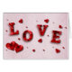 The Love Valentine's Day card features hearts and the word "Love" made to look like red crystals or rubies, scattered on a pink, lightly patterned background. Inside, you'll find two of the red crystal hearts, and the text you can customise as desired. The perfect card for your Valentine!