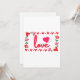 This invitation showcases the word “Love” in a unique print font with red letters pink outline inside of a rectangular styled design with red and pink themed hearts, roses and strawberry style heart on two corners in this Valentines Day theme. Printed on a classic, all around paper 17.5 pt thickness with an uncoated matte finish with an eggshell texture made and printed in the USA with "Love" printed on the back.