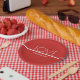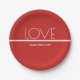 Paper Plates with a red and white with a minimal design for Valentine's Day. All of the text can be customised.