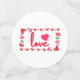 This confetti showcases the word “Love” in a unique print font with red letters pink outline inside of a rectangular styled design with red and pink themed hearts, roses and strawberry style heart on two corners in this Valentines Day theme. Each pack contains 60 pieces printed on standard semi-gloss paper 110 lb weight with double side full colour printing. Great any occasion from birthdays, weddings, anniversaries any other milestone moments.