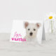 A sweet note card for Westie lovers featuring a colour portrait photograph of a super cute West Highland Terrier puppy set against a white background with the text 'Love Westies' in a bright pink and great font in the lower left hand corner. Natalie Kinnear Photography Fine Art Photographic Artist Print and Canvas Wall Art for Home Decor and Interior Design www.nataliekinnearphotography.co.uk www.facebook.com/natkphoto