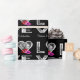 Upload your own special photograph and create gorgeous one-of-a-kind wrapping paper for your loved ones! Grunge large white letters spell out LOVE with the letter O being a heart shaped frame. Bright red and pink lipstick kisses and personalised first names of the happy couple in handwriting style font complete this heartwearming design.