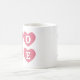 This design features pink hearts with the word love on the one side of the mug and you can customise the other side with names.