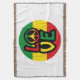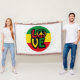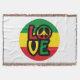 LOVE, typographic design with peace symbol and reggae style, with reggae rastafari flag colours.