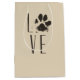 Love with Pet Paw Print Brown Grunge Typography Medium Gift Bag