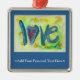 Painting of the word love in bright blue letters like a Spring morning sky. The love "o" is a pink and purple heart. Soft and fresh yellows and greens swirl in the background like daffodils after the winter snows. There a light sprinkle of glitter over the top of the love word painting for textural contrast. The inspirational word painting series are taken from the text used in the angel paintings. "I choose to know love" -My Life, My Choice "In my life I choose to know my love" -Feel Beauty "It cannot cripple love" -What Cancer Cannot Do These images are designed so as to provide reflection and meditation on a single word. You can also combine them together to make your own word series for meditation/ contemplation. Personalise this ornament with your own text and images using the "Customise" button.
