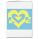 A graphic logo design, custom made. LOVE in yellow on blue.
