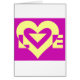 A graphic logo design, custom made. LOVE in yellow on purple.