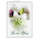 White lily whit a white heart frame. You can personalise this beautiful card.