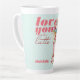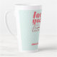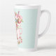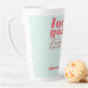 Personalised latte mug lettered with "love you a latte". Cute design with retro polka dot pattern and illustration of a latte mug laden with strawberries and cream, macarons, doughnuts and sweet treats.