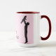 Cute, silhouette picture of a man holding a child up high, is featured on this combo mug for Father's Day. With message, "Red heart (love) You Dad", mug is pink and white on the outside and inside of mug and the handle are deep red. Mug is microwave and dishwasher safe too! A great gift for Dad on his special day!