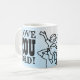 "Love You Dad" quote reads the text on either side of this mug. In the centre is a cartoon style drawing of a father carrying his child on his shoulders with a white sunburst over a blue coloured sky in the background. Blue background colour may be customised. Perfect gift for a special dad on Father's Day! Designed by world renowned artist ©Tim Coffey.