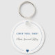Simple modern typography script LOVE YOU DAD personalised handwriting signature keychain for your father featuring a blue circle with two little hearts. ++++++++ Could be a pretty keepsake gift for papa on Father's Day, birthday, Christmas or on any other occasion.
