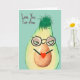 Cute Valentines Day card featuring an Avocado holding a red heart.