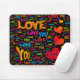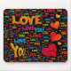 Colourful LOVE YOU words pattern made of hundreds of hearts in vibrant yellow, red, pink, blue and green colour over black background