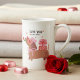 Love You Fur-Ever Cute French Dachshund Dog Bone China Mug features a cute Dachshund dog wearing heart shaped glasses, pink beret and bow holding a flower and carrying gifts with the text "Love you fur-ever" in modern script typography. Accented with cute red love hearts. Perfect gift for girlfriend, sweetheart, wife, dog lover and more for Valentine's Day, Christmas, birthday, holidays, anniversary and more. Created by Evco Studio www.zazzle.com/store/evcostudio