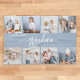 Give Grandma a gift she'll cherish. This photo collage kitchen towel features eight of her favorite square photos of the grandkids, along with the message "Love You Grandma." The word "grandma" appears in elegant white handwriting script with flourishes at the beginning and end on a dusty blue background. Add the names of up to four grandchildren. An ideal gift for holidays, birthdays or grandparents' day.