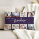 Give Grandma a gift she'll cherish. This photo collage accent pillow features eight of her favorite square photos of the grandkids, along with the message "Love You Grandma." The word "grandma" appears in elegant white handwriting script with flourishes at the beginning and end on a purple background. Add the names of up to four grandchildren. An ideal gift for holidays, birthdays or grandparents' day.