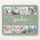 Give Grandma a gift she'll cherish. This photo collage mouse pad features eight of her favorite square photos of the grandkids, along with the message "Love You Grandma." The word "grandma" appears in elegant white handwriting script with flourishes at the beginning and end on a sage green background. Add the names of up to four grandchildren. An ideal gift for holidays, birthdays or grandparents' day.
