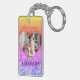 send your keychain gift that is full of love that features your best photo with your grandma to tell her that she is stylish holography unicorn pink, purple and golden heart.