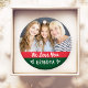 i am over the moon with this. it will hang on my christmas tree with pride. its my grandaughters first Christmas, and i know her parents will love it also , when they see it . the color is great , on both sides, the family is on other side . i will recommend to anyone . 10 outa 10 . thank you so much . delivery was quick also ( considering covid also post delay ) . price unbelieveable . i have had a few items from Zazzle never any complaints , customer service is awesome as well . excellent , no complaints at all