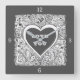 A grey and white square wall clock featuring "Love You." To change the text click on the personalise button. This design was created with A.I.