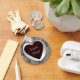 "Love You!," text on a red heart on a silver metal heart which is on a cool sequins look background. Nice for weddings, silver 25th anniversaries, Valentine's Day, Mother's Day, and birthday gifts, etc. A lovely, fun keychain and a unique, personal gift for that someone special.