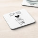 Cute and trendy typography coaster with the words 'love you long time' in a black text on a white background, and a small black heart in the middle.