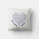 Love you more... throw pillow in pale grey & navy blue on white. Rows of tiny grey hearts on white, and a centred larger navy blue heart (also made up of rows of tiny hearts), and the words: love you more... in navy, framing the lower edge of the heart.