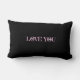 Love You More, Pink Grey & White Hearts on Black Lumbar Cushion
