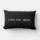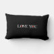 Love You More, White Red Hearts on Black Lumbar Cushion