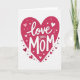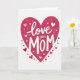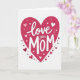 This greeting card shows a large deep magenta heart centred on a white background, with small hearts scattered on and around it in pink, white, and dark red. The main words read “Love you MOM,” placed right in the middle of the big heart. “Love you” is written in a smooth, cursive-style white lettering, while “MOM” is in white capital letters that look thicker and stronger. A soft shadow under the letters and some of the tiny hearts makes them look slightly raised, like gentle layers. The overall look feels warm and caring, like a simple way to say thank you and “I’m thinking of you.” It works well for a mum, but it can also fit anyone who has been there for you with steady love and support 🥰. The little hearts around the main one add an extra touch of affection without crowding the message ❤️, and it’s a sweet way to share Valentine’s Day feelings with someone you love.