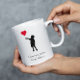 Surprise your mum with this modern and stylish coffee mug! Featuring a silhouette of a boy holding a red heart balloon, it's a heartfelt way to say "I love you, mum." Personalise it by adding your name for a personalised touch. Perfect for minimalistic moms who appreciate thoughtful gestures.