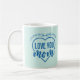 Love You Mum Sweet Coffee Mug For Mum - This is a sweet and pretty Mother's Day Present for your mum. It is a coffee mug that says, "Love You Mum" and the mug is a mint green/light blue colour with bright blue lettering and floral/greenery accents. It is a super gift for Mother's Day, Christmas, Your Mum's Birthday or anytime you want to show her a little love and appreciation!