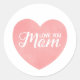 Love you mum text, mother's day heart design classic round sticker