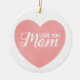Love you mum text, mother's day pink heart ceramic ornament