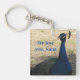 "We love you, Nana" is the sentiment on this inexpensive keychain. Peacocks are magnificently beautiful birds that have a very distinctive call if you are luck enough to hear it. This photo captures the beauty of the male peacock who is standing proud and displaying his brilliant blue colours. The brown earth-tones allow the stunning bright blue colour to pop off this keychain. The text can easily be personalised to your needs.