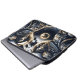 The sleeve is made of nice feeling material and seems very durable. I'm not sure how easy it'll be to clean, but the construction seems sound and the fabric is quick thick. I also like the double zipper. The printing is lovely and appears durable. The white on black contrast is nice, and the design very elegant.