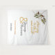 Birds and foliage adorn this wedding banner tapestry, featuring "Love you to the Moon and back" in wonderful calligraphy letters, All other text is editable.