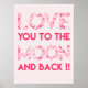 NewParkLane - Poster, with quote: 'Love you to the moon and back!!' in fun bold typography in hot pink and with text in pattern of different shades and sizes pink hearts.