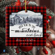 Beautiful custom ornament to cherish as years go by! Two text areas for you to add names and date or any other message you like.Buffalo Plaid in red and black checkered pattern with gorgeous rustic watercolor mountains and forest scenery with phrase "Love you to the Mountains and Back". Use of block and hand script typography. Coordinating cards and gifts available.