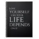 The Motivational Notebook: Love Yourself Like Your Life Depends On It: The Classic, Unique, Motivational Notebook is a beautifully produced, college ruled, complete with 80 black & white lined pages which is ideal for those who want to write down their everyday goals, thoughts that come to mind, book ideas or just reminders.