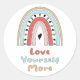 It features a colourful boho rainbow with a motivational short quote (Love yourself more).