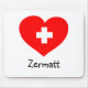 This cute Zermatt souvenir mousepad / mouse mat features the red Swiss flag in a heart shape against a white background and a 'Zermatt' slogan. A simple statement about your love for this beautiful land of the Alps.
