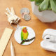 Original painting of a lutino mix lovebird by designer/illustrator Carolyn McFann on quality postage, cards and gifts for parrot lovers.