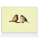This Earth Day card features a pair of house finches perched on a branch. The male has red plumage on his head and breast. The female is tan and brown with stripes. They stand out beautifully against the luminous green background. The text reads: Think green! This planet needs our love. It can be customised to suit your needs.