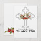 These charming and romantic thank you notes (flat, non-folding) feature elements taken from a vintage Valentine--birds (doves) and red roses--and an elegant Christian cross. Personalise with your names.