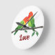 Customisable small wall clock featuring two lovebirds that were drawn in coloured pencil.